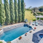 The private backyard is complete with a custom pool and spa, newly-installed landscaping, and a pergola large enough to host a small wedding. For your convenience, there is a full bath with direct access to the pool.