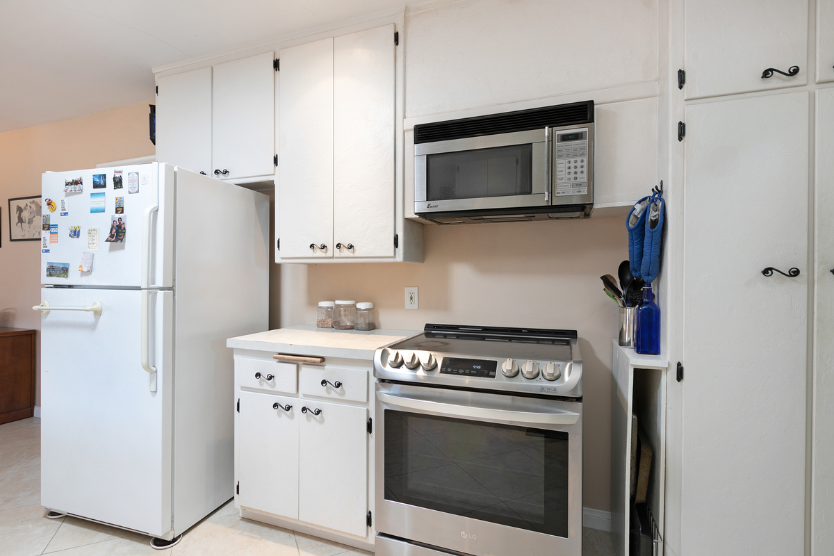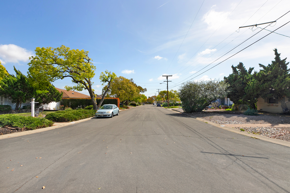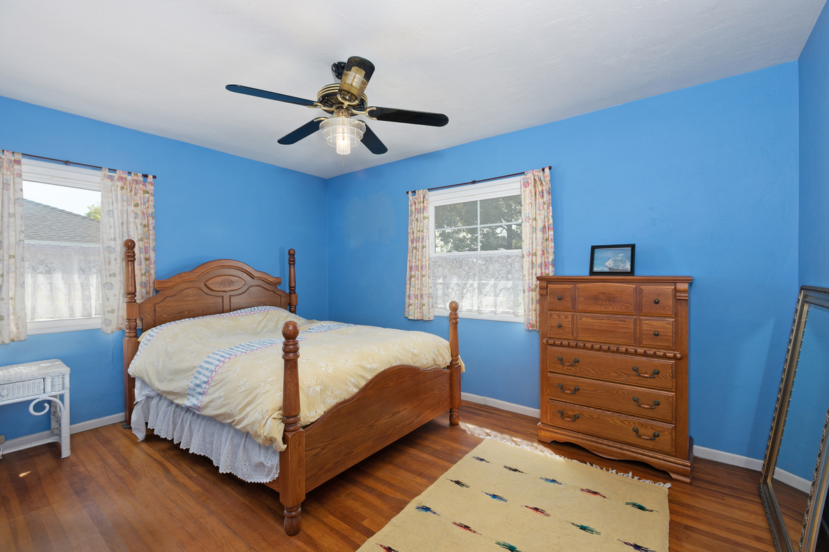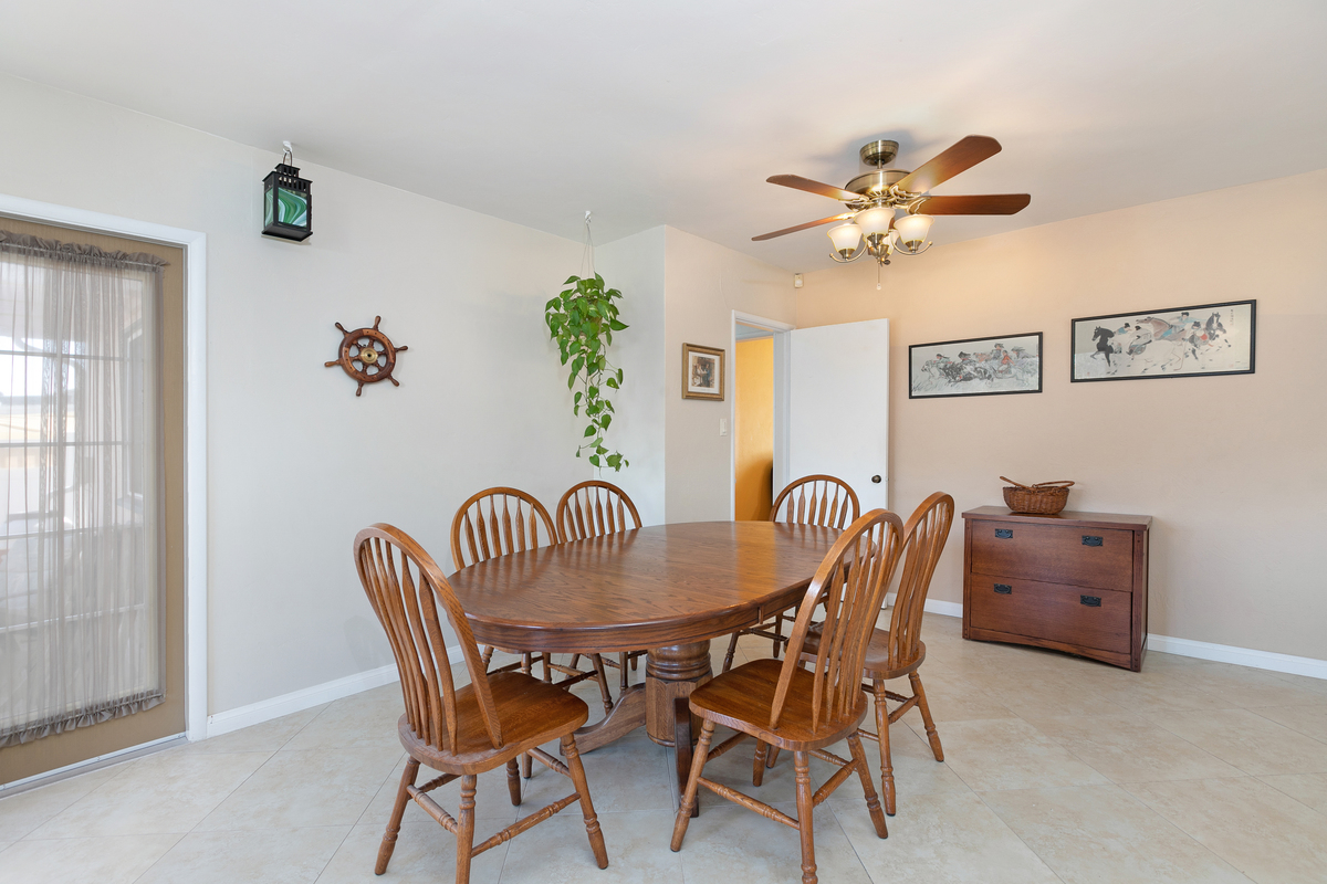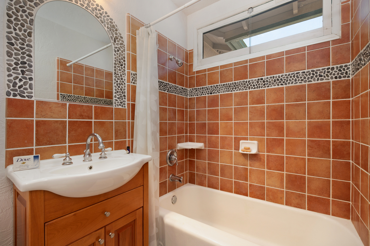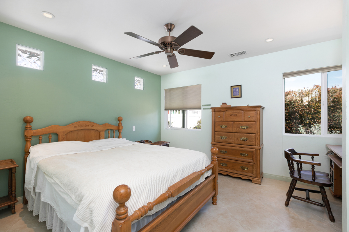 This mid century single story home features original oak floors, tile floors, and newer dual-pane windows. The main bedroom suite and expanded 18’ x 13’ family room, added in 2006 with permits, both offer tranquil views of the backyard. Both bathrooms feature custom tilework.