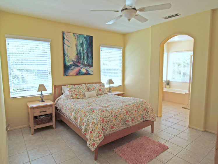 This Rancho Carrillo/Ventana Village home is located at 6027 Paseo Alameda, built in 2000, and features three bedrooms, 2 1/2 baths, and a bonus loft/office nook in 1600 square feet. There are tall ceilings throughout, and lots of light. This house is equipped with Central Air Conditioning, not found in all Rancho Carrillo homes.