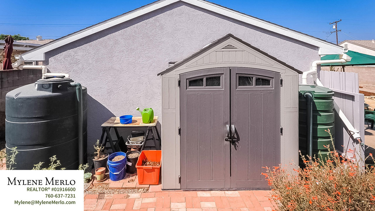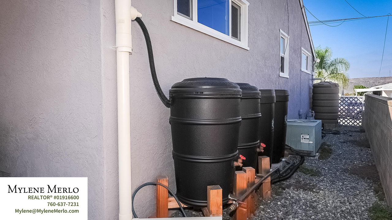 There is also a sophisticated rainwater capture system, which collects rainwater from the roof, to be used for irrigation. The rainwater catchment system includes 5 tanks, and one tank has a pump to water the back hillside.